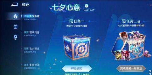 大家好,王者荣耀七夕心意活动介绍,免费得皮肤SNK英雄。王者荣耀七夕心意活动现已开启,玩家只需完成2个任务就能领取丰富的奖励,其中包括皮肤英雄宝箱和惊奇魔盒,下面我们一起来看看吧。