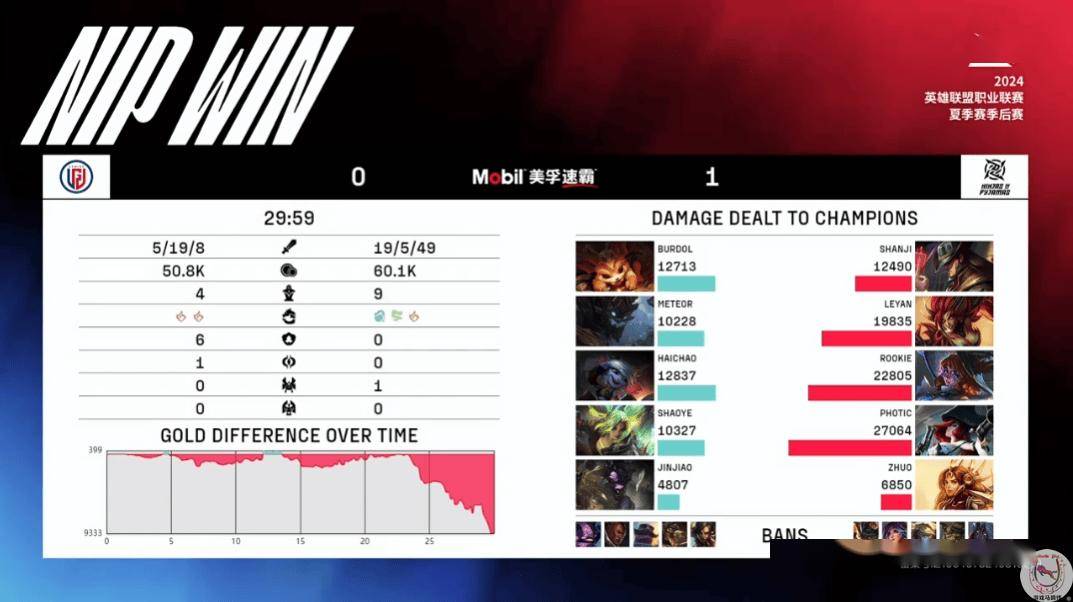 LPL夏季赛季后赛第一轮LGD对战NIP的Bo5,最终由NIP复仇成功以3-1淘汰LGD晋级到第二轮。两队在此前的登峰组有过一次交手,在Bo3的0-7大战中LGD获胜,这也是导致NIP以0-8垫底。不过在经历了附加赛的充电,以及版本变化,加上进入了Bo5和新打野逐渐融入之后,NIP的状态显然变好了。