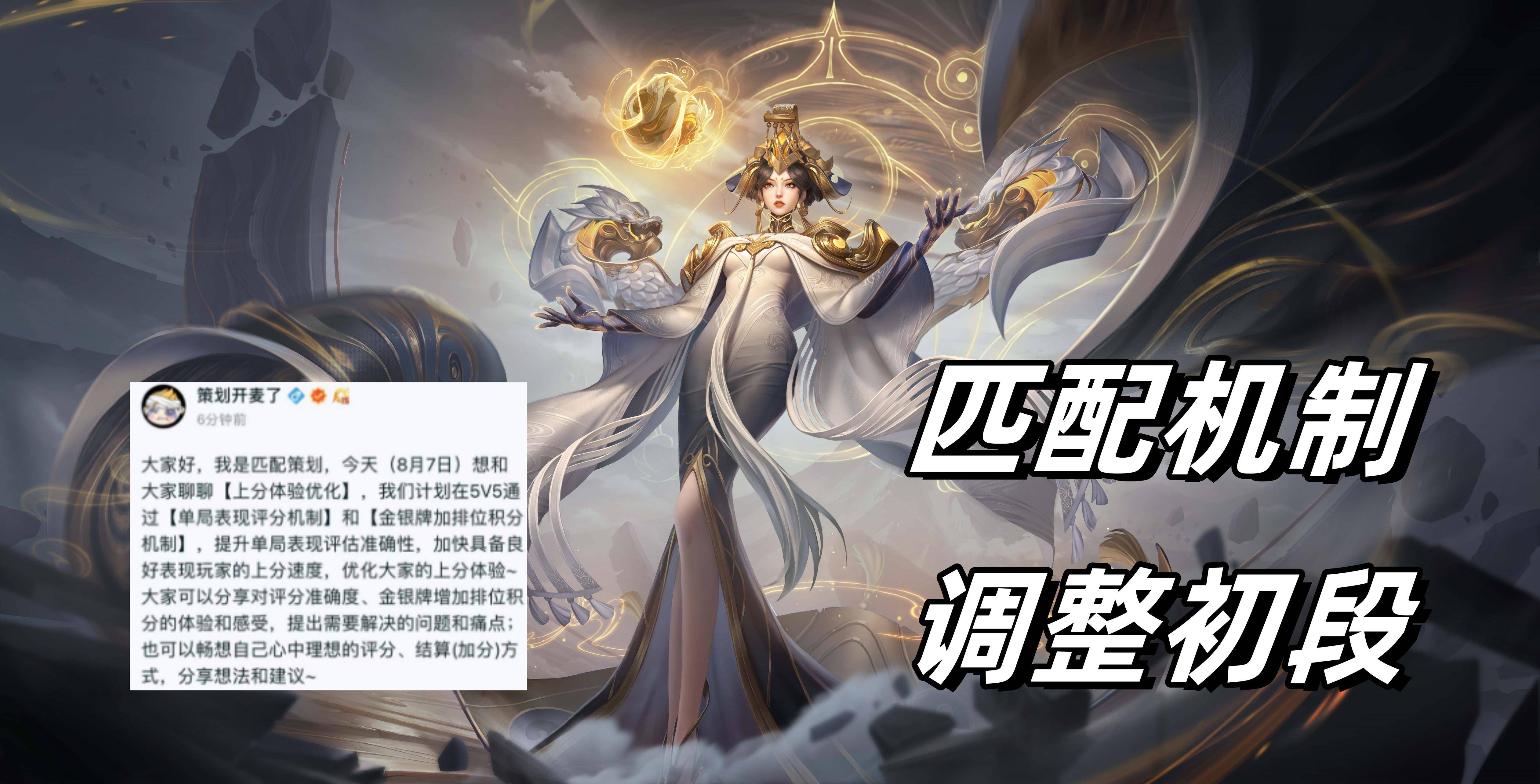 于王者荣耀匹配机制的调整,已经进入初段,王者荣耀官方策划不仅针对王者荣耀匹配机制的问题作出了相应的解决方案,而且听取了玩家的建议。