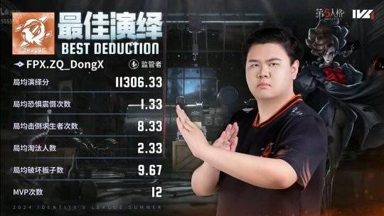 2024年8月10日,第五人格IVL夏季赛常规赛第十周第二日的比赛开始。在当天的比赛中,FPX.ZQ以1胜2平0负(15:10)的战绩击败了TE,以下是本场比赛战报。