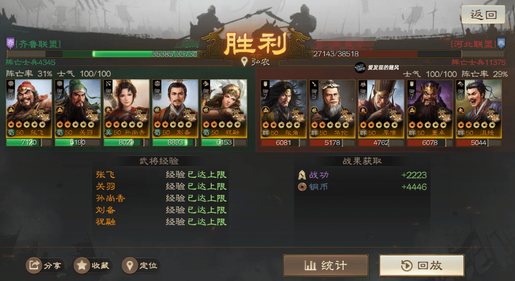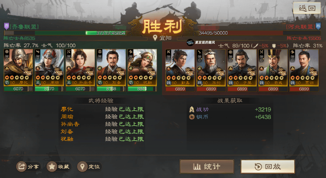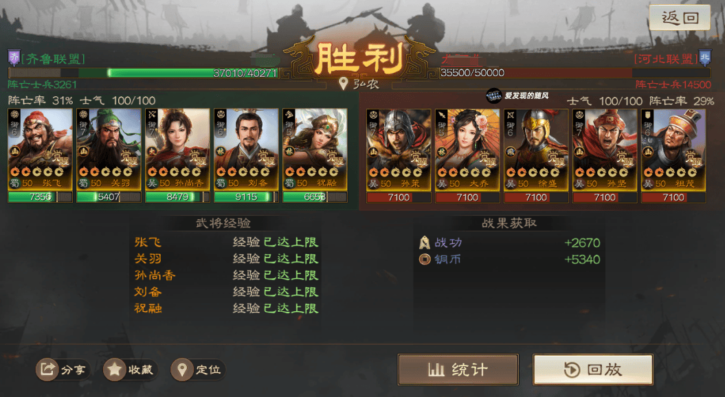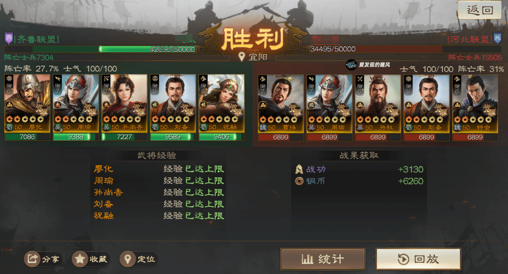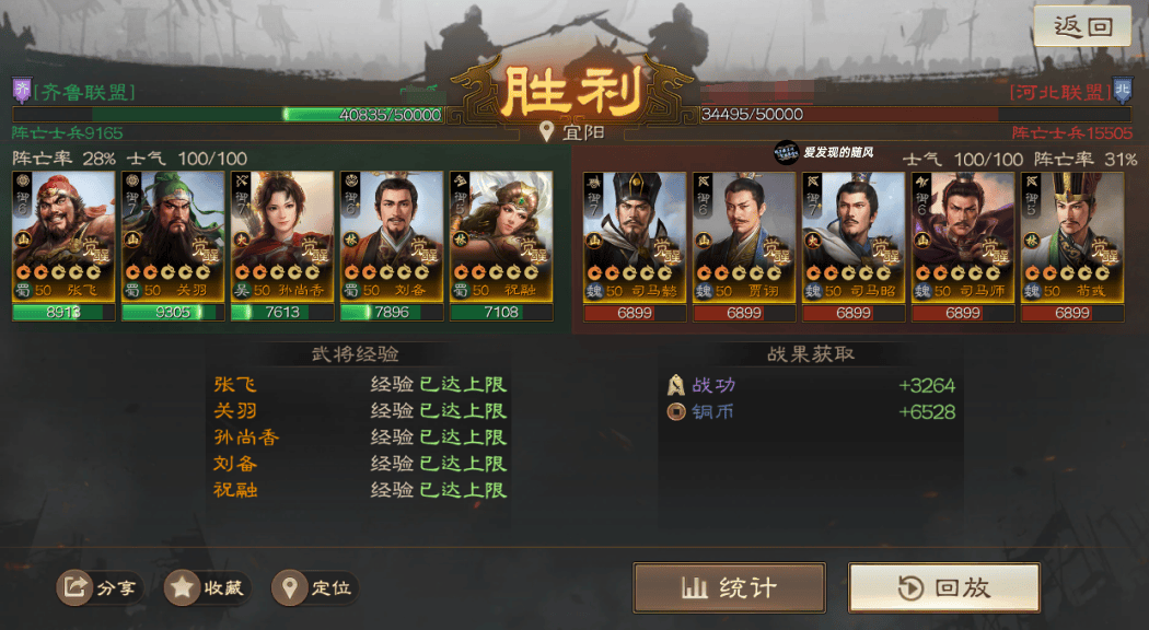 输的两把战报里面,群骑对面是手操的,且这个战报没带节烈,SP周瑜直接被贾诩控死了;北伐这个战报则是低兵力,对面光环就差先礼后兵,其他都带了,配置有些豪华打不太动。