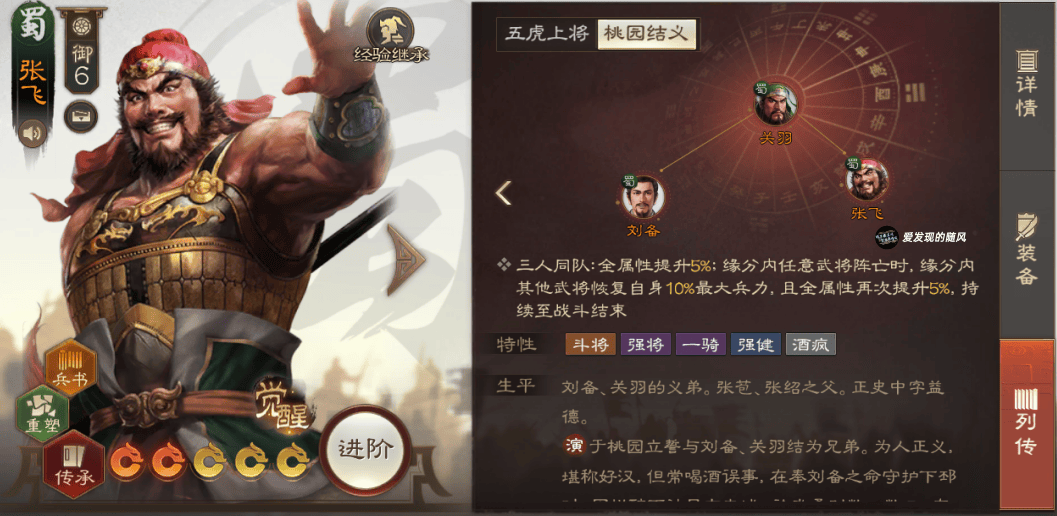 上一波改动个人认为增强最大的是这个【桃园结义】的羁绊,让刘关张三人其中一个阵亡了也不要紧,不阵亡就持续恶心人吸收伤害。