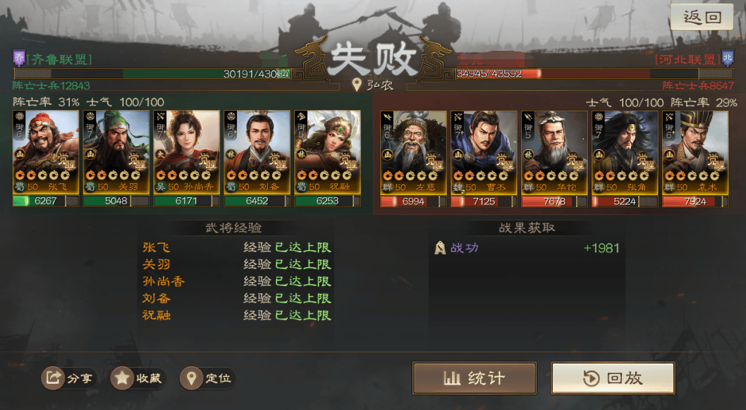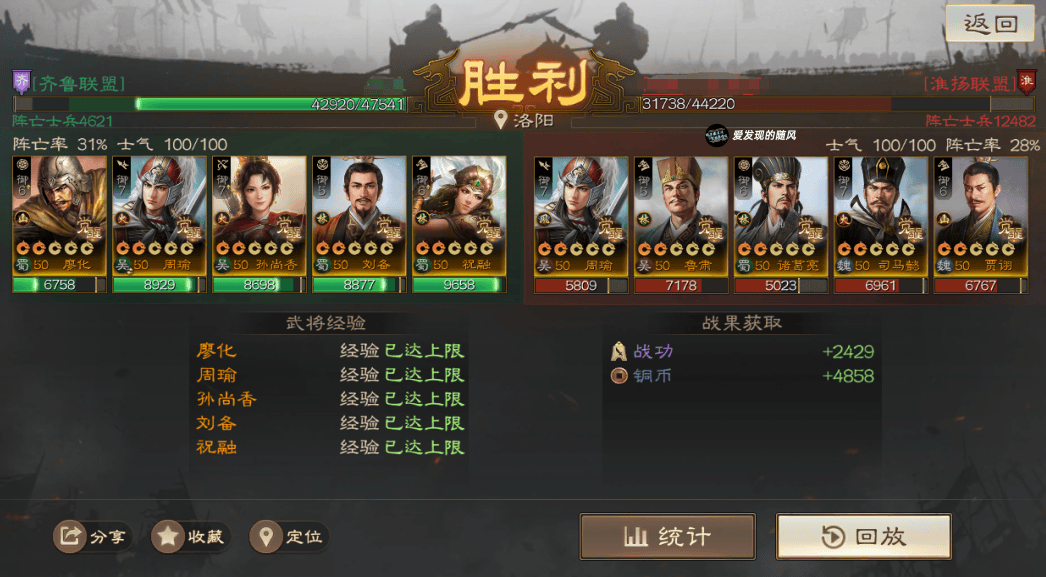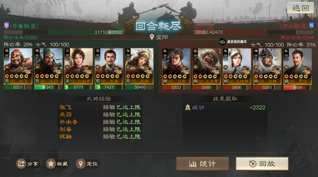总的来说这个队伍稳定性比起上一个好很多,就算输也不会白给,能打出伤害和战功,但队伍配置武将相对较高,需要两个SP周瑜。廖化这里带张飞也不是不行,就是开局稳定性会稍低一些,毕竟少了廖化的光环分摊。