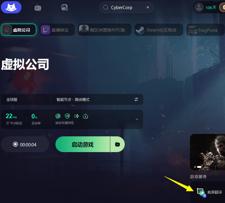 CyberCorp暂不支持中文,游戏内看不懂的可以用baomiao加速CyberCorp(虚拟公司)界面的截屏翻译工具。