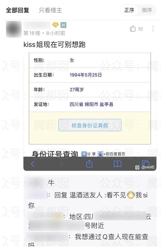 她在贴吧里叫卖,贴吧id是kiss。