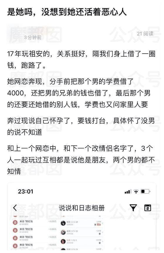 3、她的手法很简单,肯定挂认识的人号上避避风头,后面这件事淡了再改回自己或者卖了。有网友推断是挂在了女方现男友的号上。