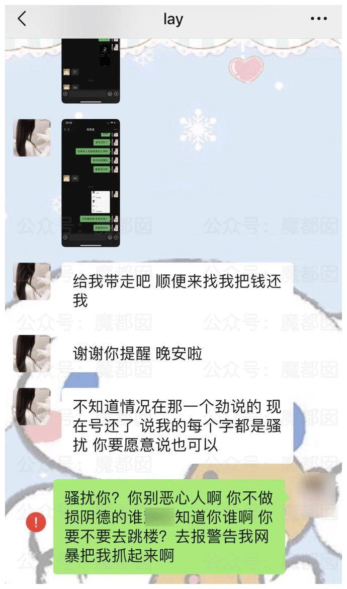 还号称自己要去把网暴她的人截图报警:
