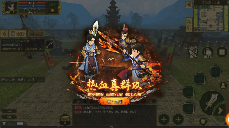 - 《热江群攻版》:画质上进行了提升,更贴近于端游的效果,为玩家呈现出一个更加生动逼真的武侠世界。同时,游戏采用了清新明亮的画风,结合多样的自然光效,营造出优美的江湖氛围。