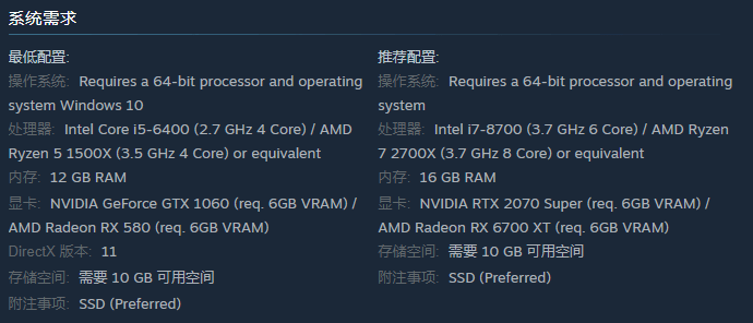 配置要求如下图: