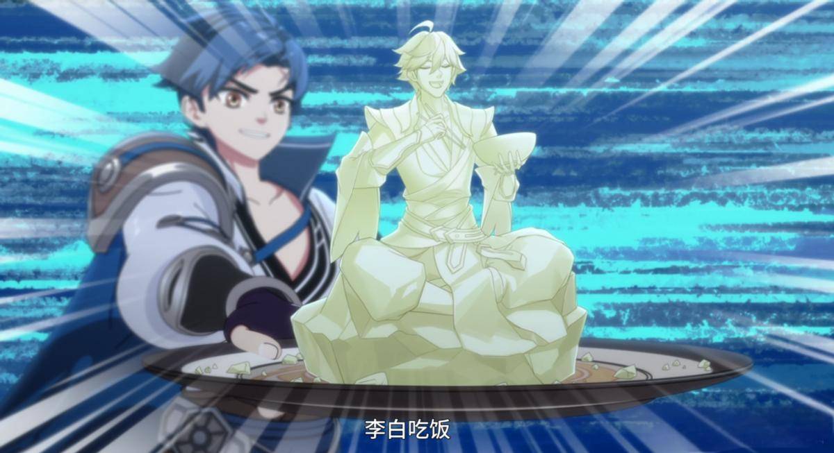 再比如:曜在接到帮厨师切菜的任务后,与厨师长之间展开的那场别开生面的刀工较量,最后用剑雕刻出李白的各种造型,让观众在惊讶之余又能会心一笑。