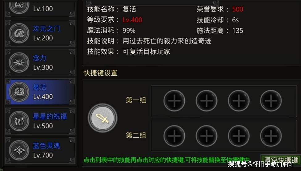 技能效果:可复活目标玩家