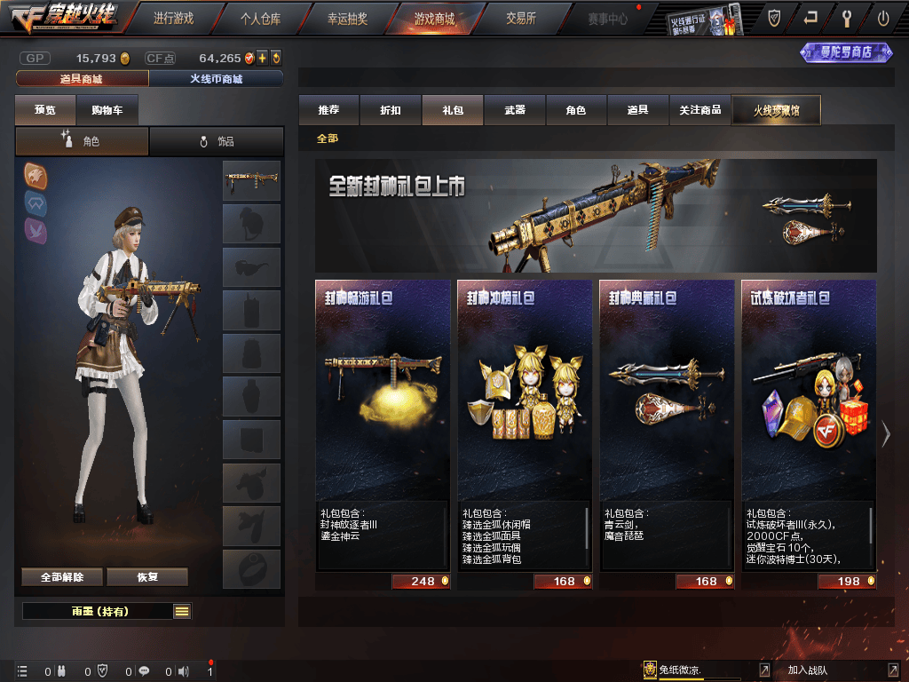 目前魔音琵琶与青云剑,可通过游戏商城的直购封神典藏礼包获得,或者参与网页的封神主题抽奖活动。在之前错那六款黄金武器的Cfer,可以考虑下这两款同样具备高属性加成的国风武器。