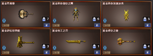 这也就意味着探险模式的生命值上限再创新高。再加上之前的黄金迷你深渊冰龙、黄金迷你裂空之翼、黄金虚空之槌、黄金特工之刃、黄金萨拉坦铁棍、黄金芭蕉扇,一共是八款能增加3条生命值的极品近战武器了。