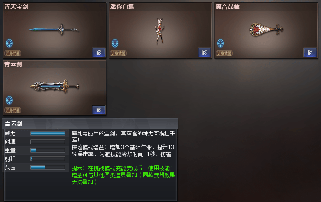 除了令人眼前一亮的外观特效,魔音琵琶与青云剑最吸引人之处就是它们那恐怖的探险模式属性加成了。每一把武器装备后可以增加13%的暴击率,以及3条基础生命。当然不能带一模一样的,同款武器只生效一把。