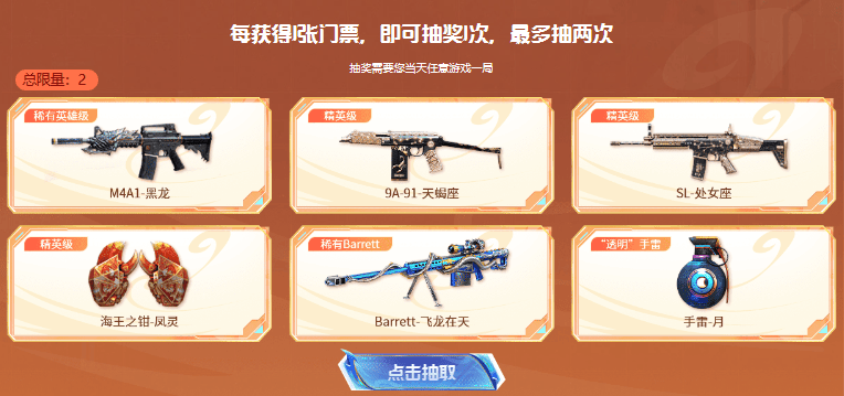 奖励道具:M4A1-黑龙、9A91-天蝎座、龙鳞等