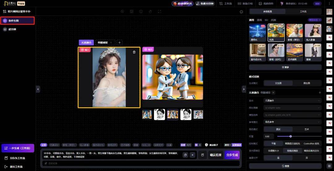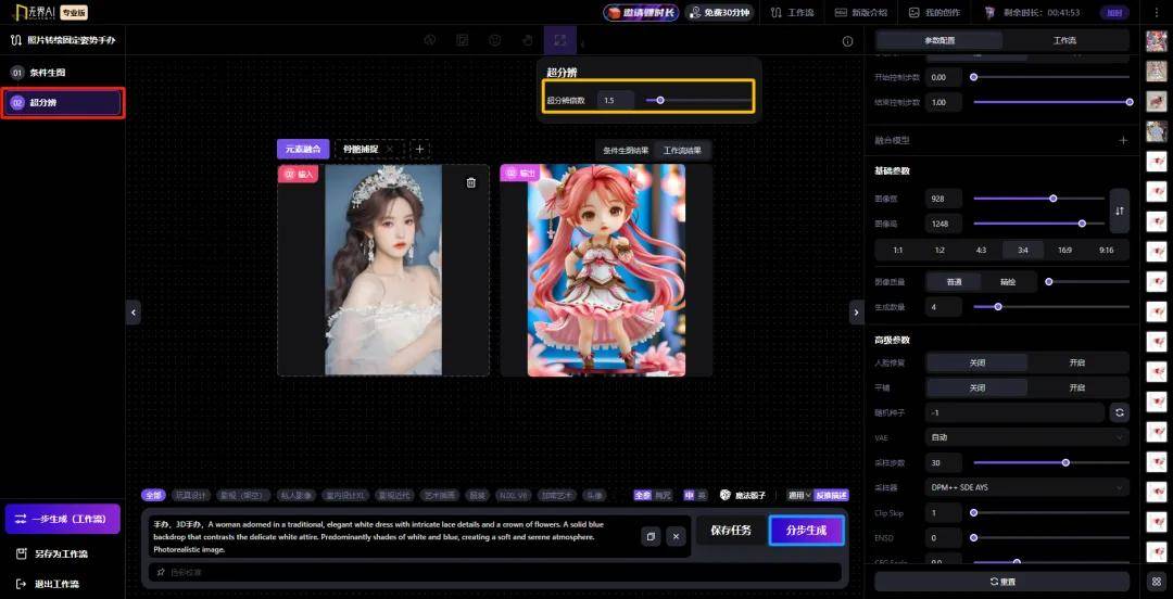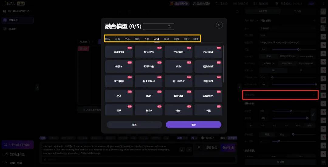 有需要的可以通过「融合模型」,配合提示词,对生成手办的风格进行调整:
