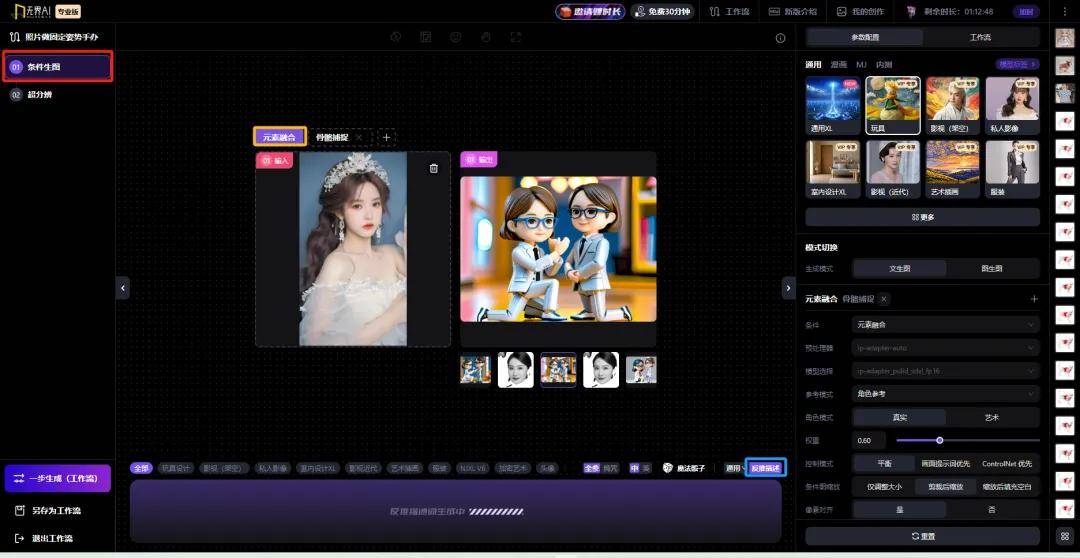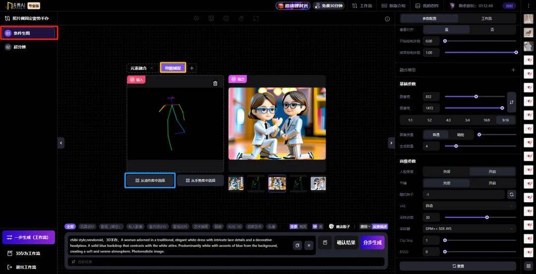 此时,这个工作流中使用了「元素融合-角色参考」和「骨骼捕捉」两个功能。