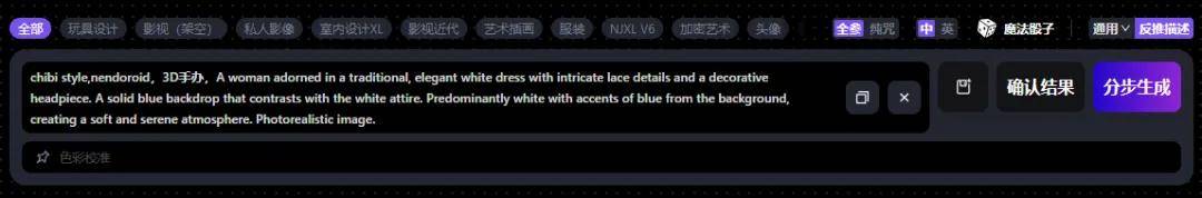 获得提示词以后,我们根据需要调整提示词,并且添加“chibi style,nendoroid,3D手办 ”等表述手办的限定词: