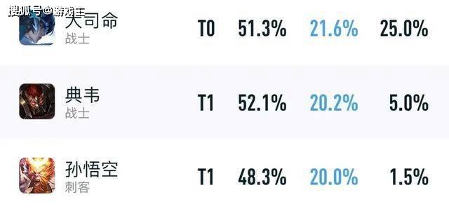 即便是在玩家水平参差不齐的全分段里,大司命也有着51.3%胜率+46.6%BP率,以碾压的姿态,超越了孙悟空和典韦这两位“低分战神”,优先级独居一档。