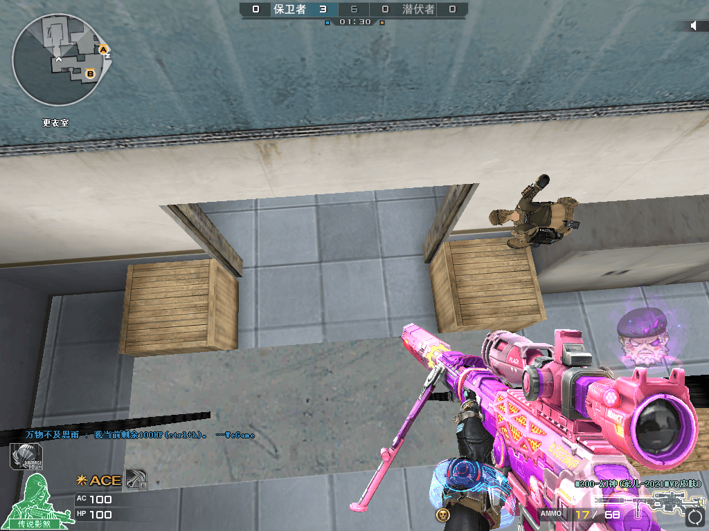 此点位潜伏者不是敌人第一预瞄点,而且在B通机械室敌人完全没有视野,属于非常规点位,学会此身法后,更衣室一人守点足以。