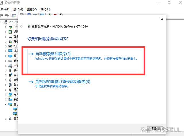 4.选择更新方式:你可以选择让电脑自动搜索更新,或者手动前往显卡官网下载对应的驱动程序,下载后解压到电脑上进行安装。