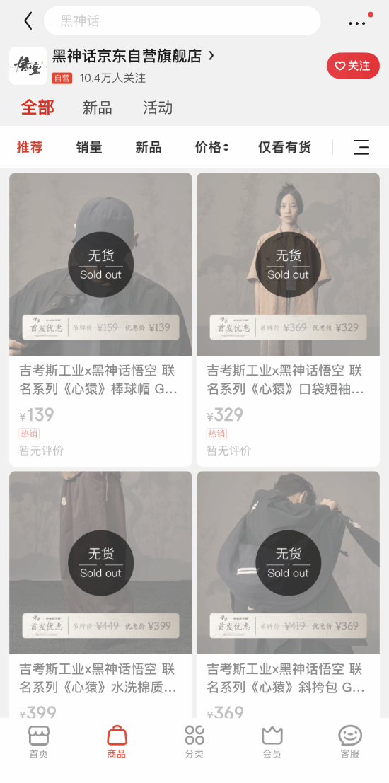 《黑神话:悟空》×吉考斯工业联名服饰现已上架黑神话京东自营旗舰店,今晚8点开抢。8月12日惊喜发售开放四个服饰品类,8月20日正式上线售卖新增三个品类。