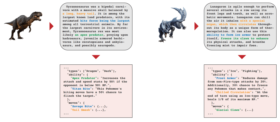 例如,将霸王龙作为原型让Claude3设计一只宝可梦,Claude3于是给出了一只具备“顶级捕食者”和“泰坦之咬”特性的全新宝可梦。