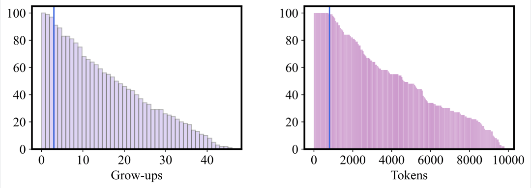 蓝色竖线代表的是用于训练的最大输入长度。可以看到一只宝可梦进行20次进化后,上下文长度达到了5k,40次进化将达到10k。但大约在10次进化过后,引擎的增量预测性能开始了阶梯式下滑。