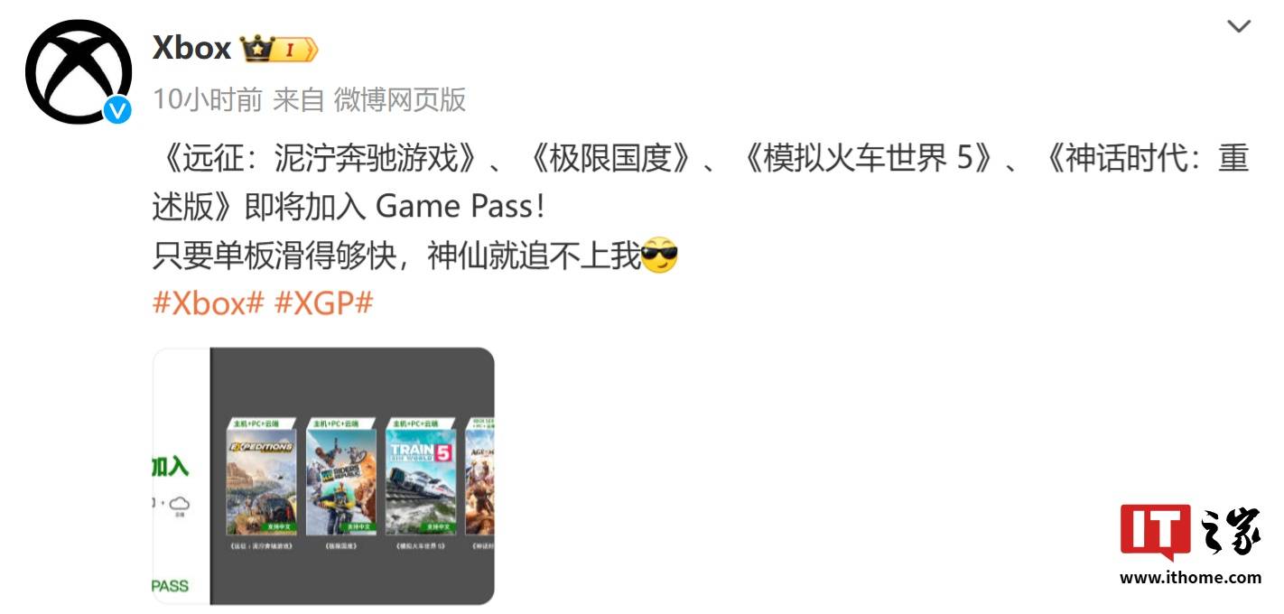 IT之家 9 月 4 日消息,微软 Xbox 官方账号昨日晚公布了 Xbox Game Pass 通行证 9 月新增游戏内容,包含《神话时代:重述版》《远征:泥泞奔驰游戏》等 4 款游戏。