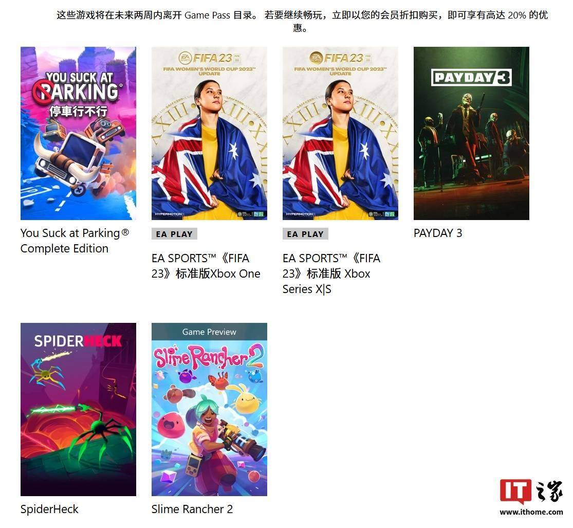 以下游戏即将于未来两周内离开 Xbox Game Pass 游戏通行证: