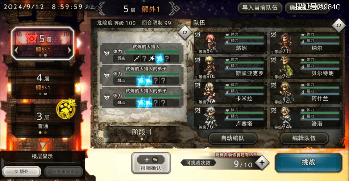 在学者塔更新后,G哥一路推到了EX4,觉得自己相当了不起,结果被5卡住,考虑到手中的五星学者只有赛拉斯、瓦尔堪、艾维斯,打不过也正常。但是随着后面的职业塔更新,缺五星就是过不去最后一层这件事开始凸显;每个塔只能凑出2到3个五星角色,以G哥的游戏理解和懒惰程度来看,这样的队伍强度无法全通职业塔。