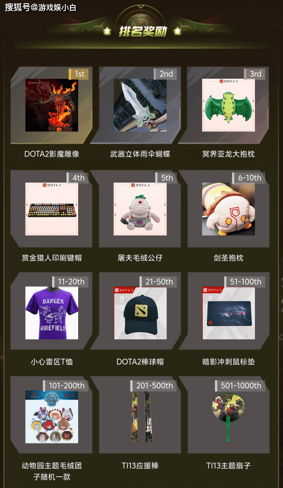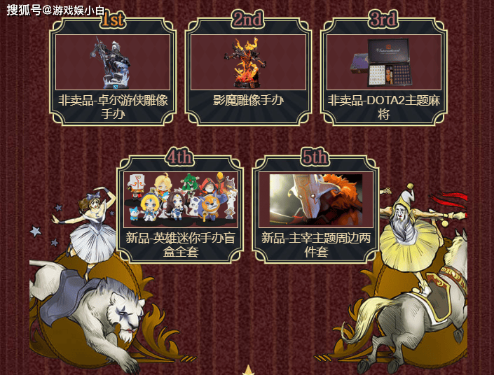 现在参加国服专属活动百戏乐园,完成任务和预测即有机会抽取国服优惠券、精美周边、完美时刻次数与稀有饰品奖励,在国服购买互动指南还可以参与排行榜活动,国服互动指南付费前三名可分别获得卓尔游侠雕像、影魔雕像和DOTA2主题麻将的超级大奖!