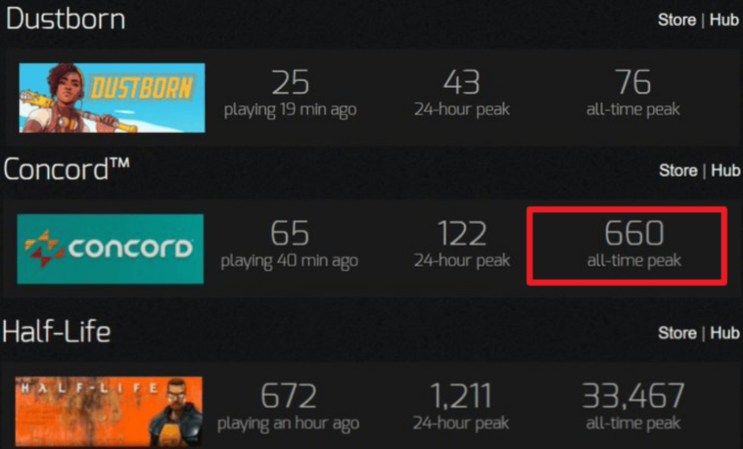 你说拿黑神话对比太欺负人,那 26 年前的老游戏半条命,在线人数也是星鸣特工的足足 10 倍。