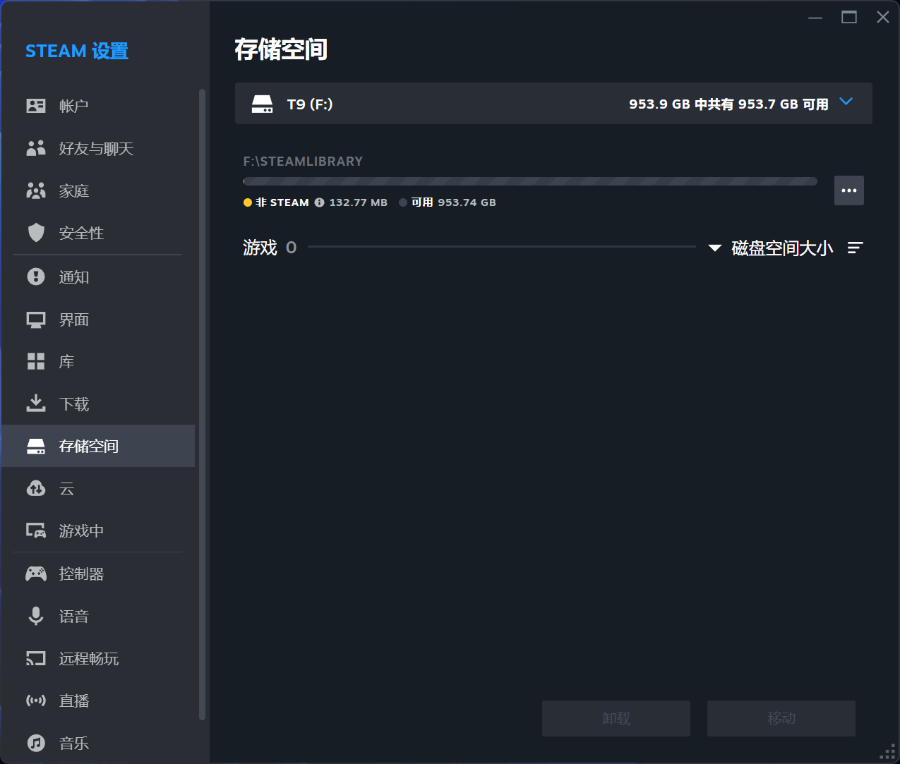 如何正确的把《黑神话:悟空》保存在三星T9中并且能运行呢?其实操作起来非常简单,第一步,打开Steam,在设置中选择“存储空间”添加三星T9,这样就会在其中建立一个名为SteamLibrary的文件夹。