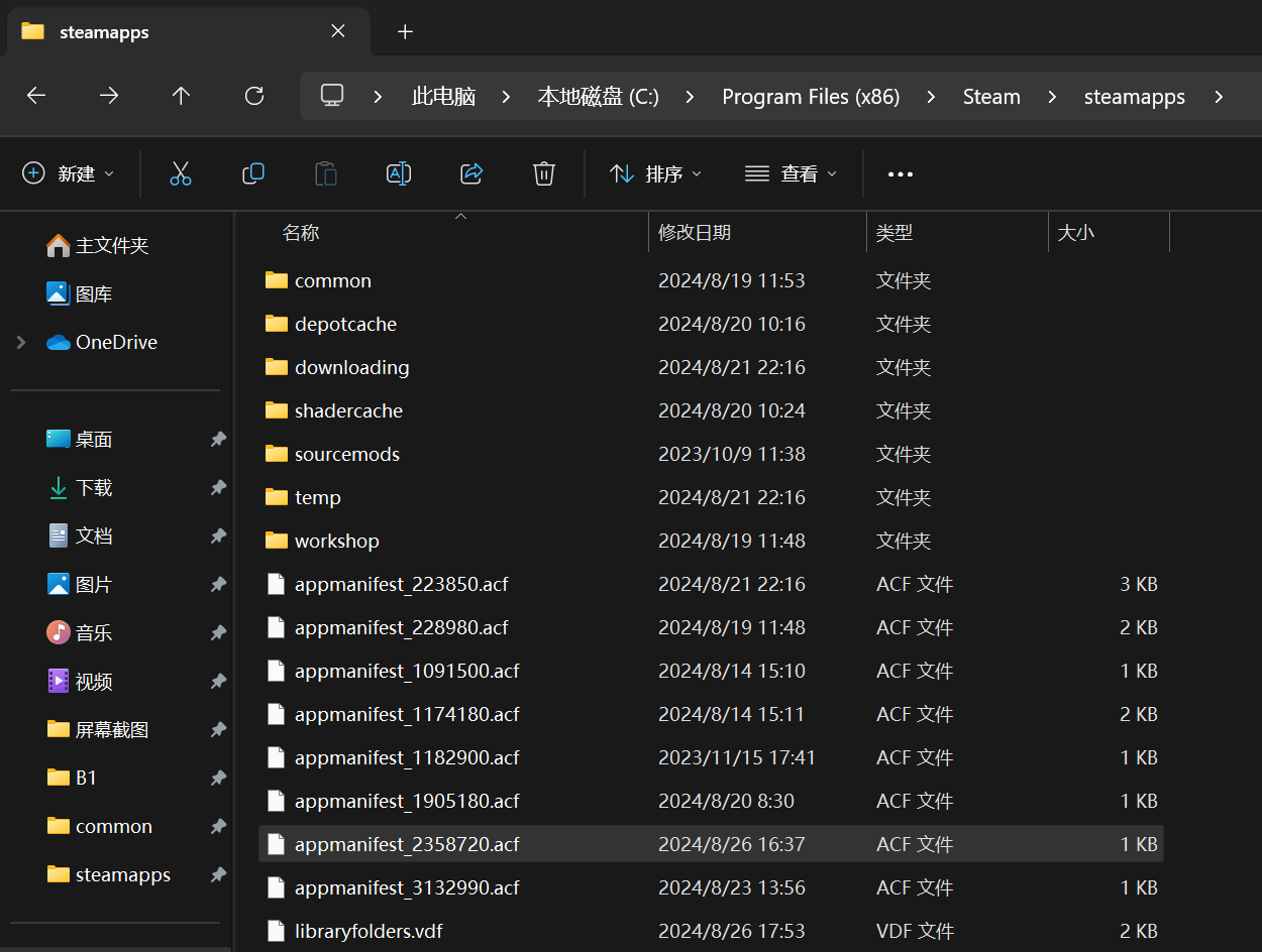 第三步,将游戏库中的steamapps文件夹中appmainfest_2358720.afc文件复制到三星T9中SteamLibrary\steamapps目录下。