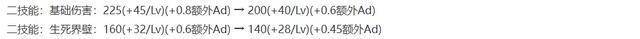 而此次的版本更新,策划也终于“狠下心”来了,直接调整了二技能的整体伤害,包括基础数值和Ap加成都有所削弱,降幅高达20%,算是比较夸张的了。