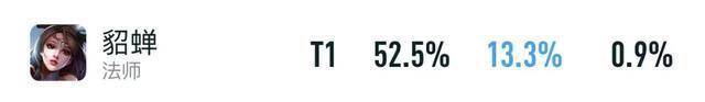 以上则是貂蝉目前的巅峰赛数据,胜率已经从48%提升至52.5%了,出场率更是翻了一倍,由此可见,貂蝉算是加强到位了。