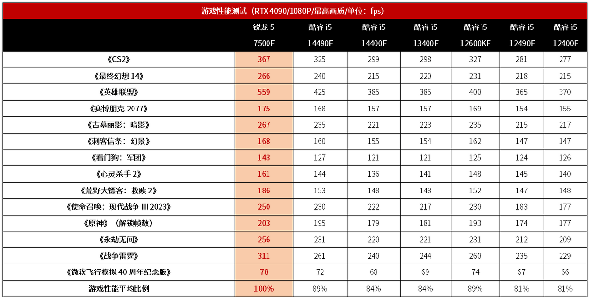 此外,从我们列出的装机配置表也可以看到,由于锐龙5 7500F + RX 7700 XT平台装机成本更低,整机的价格相对酷睿i5 14600K + RTX 4060 Ti更是有1734元的优势,因此在性价比方面,锐龙5 7500F + RX 7700 XT平台也是完胜了。