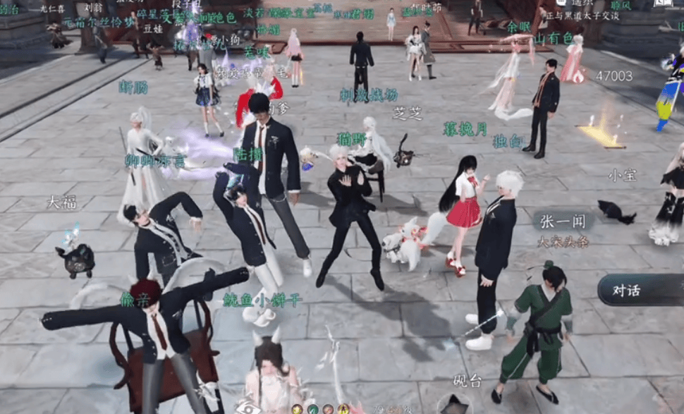 这场数百位大学生的聚会被放在了《逆水寒》手游的知名景区——汴京虹桥,玩家们一上线就看到几百位身穿男高校服的同学们站在汴京的闹市区中央跳舞。