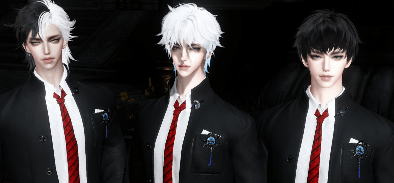 依托于逆水寒强大的染色自由度,无论是黑色款式还是白蓝样式,都各有各的帅,看起来就是风格各异的靓仔。