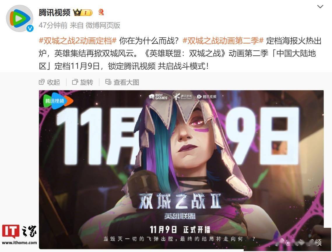 IT之家 9 月 5 日消息,动画剧集《英雄联盟:双城之战》今日发布中配版定档预告,中国大陆地区将于今年 11 月 9 日首播。