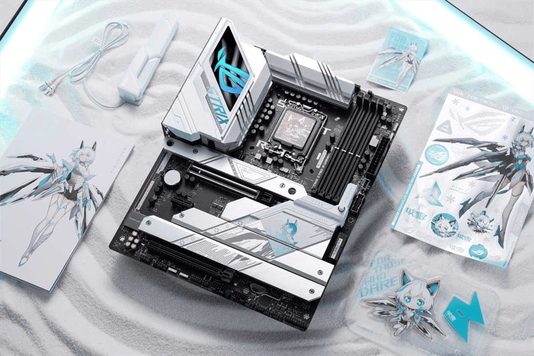 想要追求更强性能的Intel电竞主机,华硕Z790吹雪S主板不容错过。该主板ID设计再进一步,身披银白色机能战甲,并巧妙融入虚拟代言人RO姬·雪武战姬IP,次元浓度拉满。超大的I/O盔甲经过巧妙设计,配合RGB呈现更具层次感的立体灯效,颜值爆表!该主板单品售价2799元。