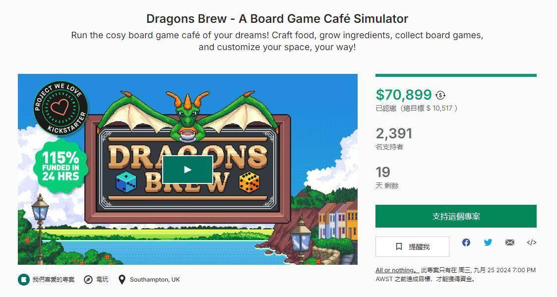 《龙之酿造》目前近支持英文,游戏已通过众筹,并在24小时内达成目标的115%,预计会在2026年推出。