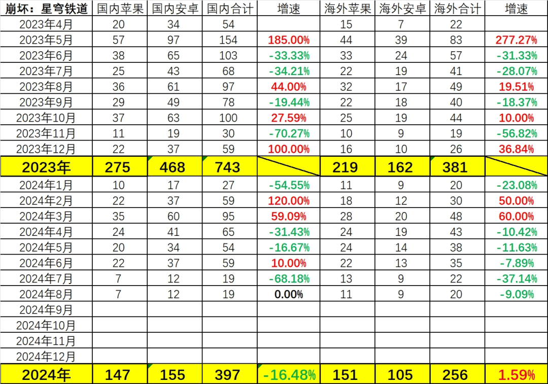 《崩铁》情况稍好,但国内也下降了16.48%(好在海外表现相对稳定)。