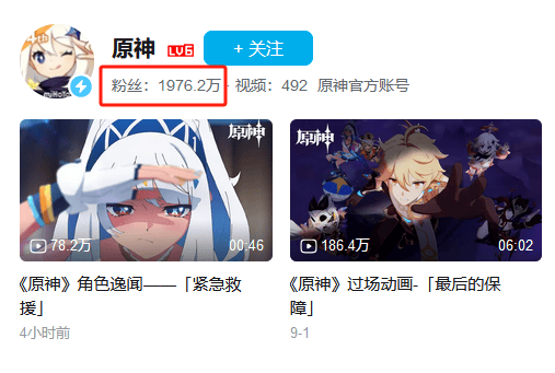 一个值得注意的现象是,《原神》B站官方账号粉丝数曾无限逼近2000万(最高时超1999万,也许官方连贺图都准备好了?),但在经过了4.8版本几次舆论风波后,已跌至1976.2万——掉了几十万活粉,大概相当于一款中小二次元产品的玩家数。