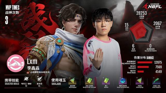 而在决赛圈通过白虎之力贡献了这次夏季赛第一个名场面的Lxm,最终毫无悬念当选该局比赛的战神,单人15个击败数以及高达28253的伤害,足以看出他在比赛中的发挥有多么亮眼。时至今日,这一场比赛决赛圈虎啸仍旧有不少观众在反复回味。可以预见的是,这一波操作绝对能登上NBPL的年度TOP10集锦。