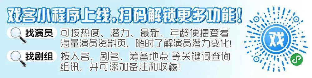 免责声明:戏客Seeker公众号(“本平台”)中全网组讯的信息、内容(“组讯信息”,包括但不限于影视项目名称、项目介绍信息、出品公司信息、导演信息、选角团队信息、拍摄相关信息、联系方式等)均来源于内容信息相关方提供或互联网公开信息。本平台不对组讯信息的真实性、准确性、完整性、及时性、关联性、适用性及安全性提供任何明示或默示的担保。请您谨慎参考或使用组讯信息,并确保您的人身、财产安全,本平台不对您使用或参考组讯信息而造成的后果承担任何责任。