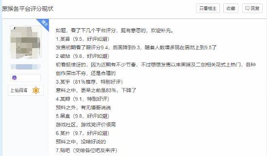 日前,贴吧网友盘点了《黑神话:悟空》在国内各大平台的评分,引发玩家讨论。