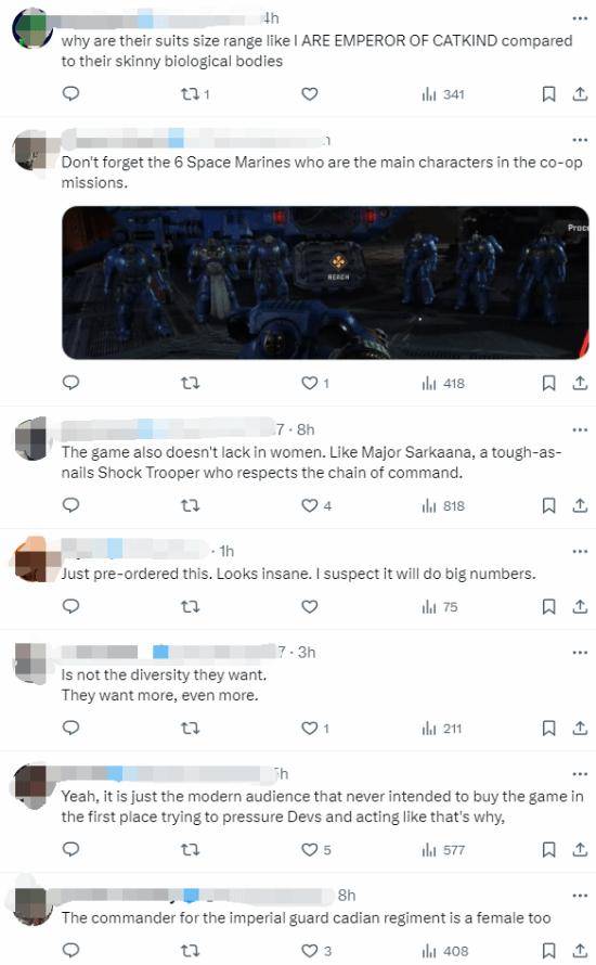 评论区有玩家指出,《星际战士2》中的极限战士其实已经比正统中的更多样化了,“这些正确人士已经得到了他们想要的东西,但还觉得不够”。还有玩家认为,这些人就是为了抗议而抗议,他们从一开始就不打算购买游戏,并试图向开发者施压,表现得好像一切都理所应当。