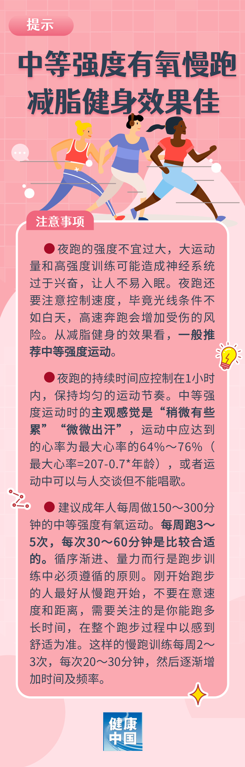 事实证明,跑步是最方便、最有效的一个运动项目,没有场地的限制,没有器械的要求,随时随地,想跑就跑。夜间凉爽、舒适,相比白天少了紫外线的照射;夜晚空气中的氧气含量较多,相比早晨空气质量较好。而晚间适度的有氧运动,可以放松一天紧张工作、学习的精神。运动产生的轻微疲劳感,还会让你睡得更香。利用跑步的时间放空大脑,释放坏情绪,第二天精神状态更好,效率也会提升……